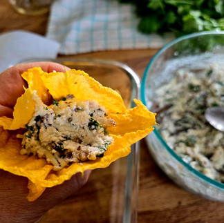 Not only do these stuffed flowers make the perfect appetizer before your dinner it is like the garden is gifting you a little appetizer before you harvest the fruit. Pumpkin and squash are in the same family, so is watermelon! You can make this recipe with any of their flowers although the watermelon flowers are edible they aren't exactly designed to hold a stuffing. I will post how to use watermelon flowers in a different recipe. For today we are focusing on flowers that look like the photo above which grow on different verities of pumpkins and squash.